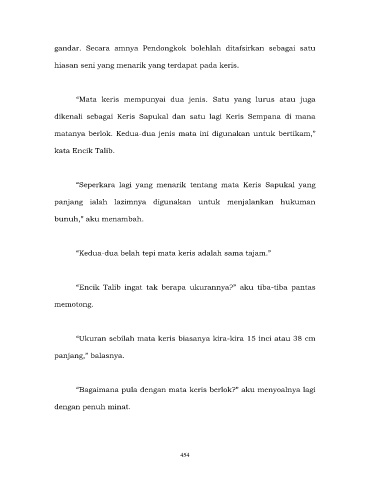 “Ukuran sebilah mata keris biasanya kira-kira 15 inci atau 38 cm