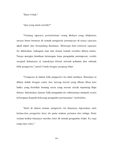 bilik pengantin,” jawab Frank dengan panjang lebar.