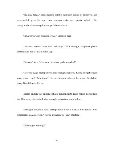 “Itu aku tahu,” balas Karim sambil menjepit rokok di bibirnya. Dia