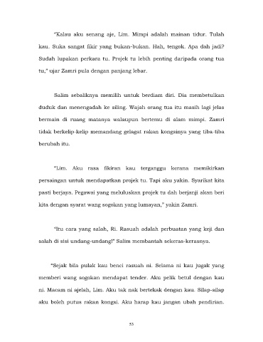 kita dengan syarat wang sogokan yang lumayan,” yakin Zamri.