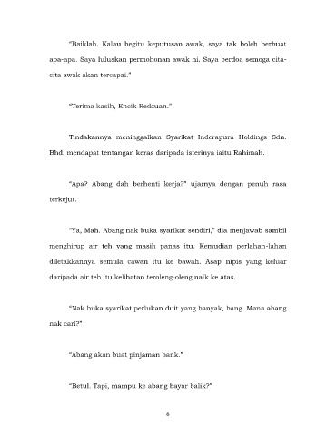 “Ya, Mah. Abang nak buka syarikat sendiri,” dia menjawab sambil