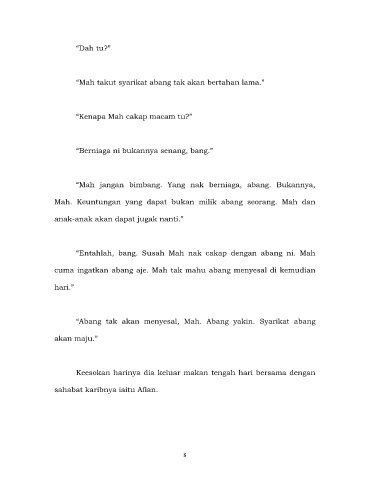 “Abang tak akan menyesal, Mah. Abang yakin. Syarikat abang