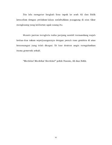 “Merdeka! Merdeka! Merdeka!” pekik Hussin, Ali dan Sidik.