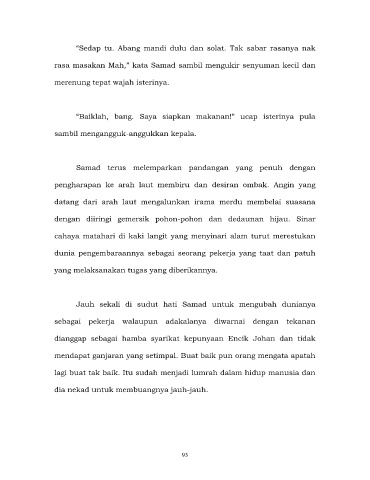 rasa masakan Mah,” kata Samad sambil mengukir senyuman kecil dan