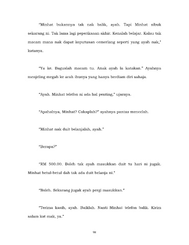 “Ayah. Minhat telefon ni ada hal penting,” ujarnya.