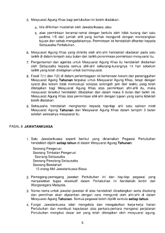 5. Mesyuarat Agung Khas bagi pertubuhan ini boleh diadakan: