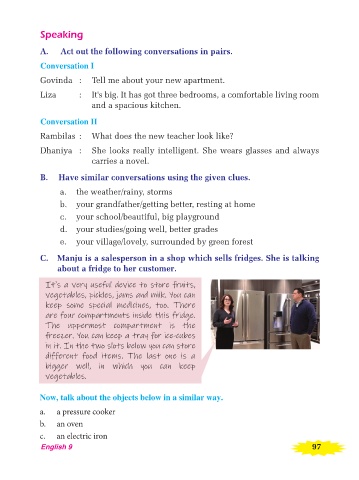 C. Manju is a salesperson in a shop which sells fridges. She is talking