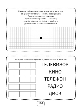 Раскрась столько квадратиков, сколько слогов в словах.