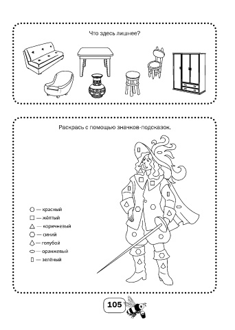 Что здесь лишнее? Раскрась с помощью значков-подсказок. — — — — — — — 105