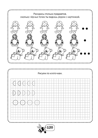 Раскрась столько предметов, сколько чёрных точек ты видишь рядом с картинкой. Рисуем по клеточкам. 120