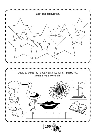 Сосчитай звёздочки. Составь слово из первых букв названий предметов. Впиши его в клеточки. 3 5 4 2 6 1 2 3 4 5 6 7 7 1 155