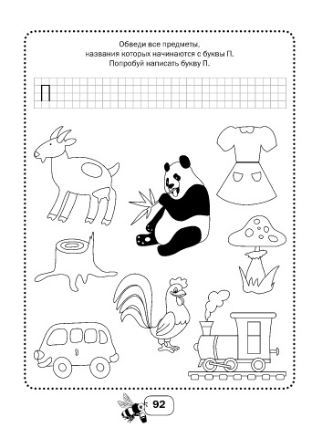 Обведи все предметы, названия которых начинаются с буквы П. Попробуй написать букву П. 92