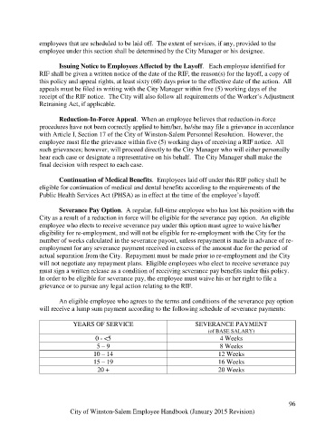 City as a result of a reduction in force will be eligible for the severance pay option. An eligible