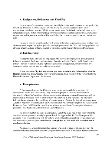 City of Winston-Salem Employee Handbook (January 2015 Revision)