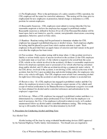 (2) Reasonable Suspicion - CDL employees must submit to testing when the City has