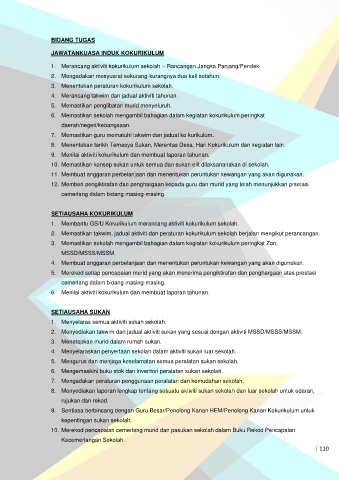 2. Memastikan takwim, jadual aktiviti dan peraturan kokurikulum sekolah berjalan mengikut perancangan.