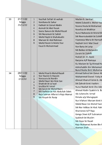 33 21/11/22 1 Nazihah Safiah bt wahab Mazlan b. Jamhari Iskandar b Ishak HORMAT- Guru Besar