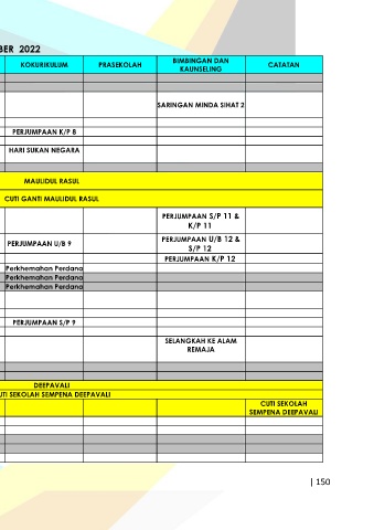 TARIKH HARI MINGGU PENTADBIRAN KURIKULUM HAL EHWAL MURID KOKURIKULUM PRASEKOLAH KAUNSELING CATATAN
