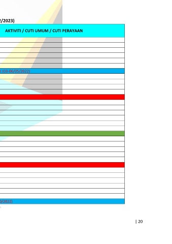 MINGGU MULA AKHIR AKTIVITI / CUTI UMUM / CUTI PERAYAAN