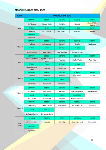 SENARAI KELAS DAN GURU KELAS