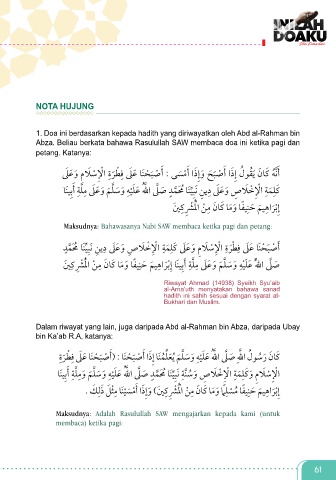 Abza. Beliau berkata bahawa Rasulullah SAW membaca doa ini ketika pagi dan