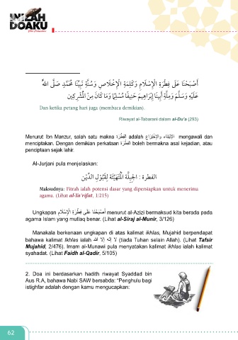 Ungkapan م َ لْسلإا ِةَرطِف ىَلَع اَنْحَبْصأ menurut al-Azizi bermaksud kita berada pada