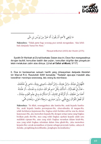 Syeikh Dr Wahbah al-Zuhaili berkata: Dalam doa ini, Dzun Nun mengawalinya