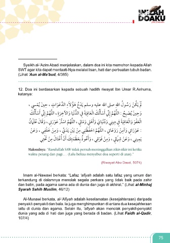 12. Doa ini berdasarkan kepada sebuah hadith riwayat Ibn Umar R.Anhuma,