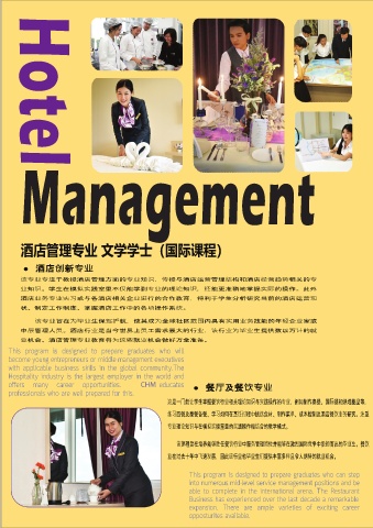 该专业专注于教授酒店管理方面的专业知识, 传授与酒店运营管理结构和酒店经营趋势相关的专