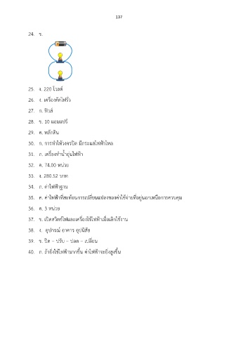 40. ก. ถ้ายิ่งใช้ไฟฟ้ามากขึ้น ค่าไฟฟ้าจะยิ่งสูงขึ้น
