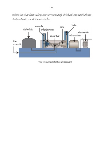 31 เหลือจะมีแรงดันต่ าก็จะผ่านเข้าสู่กระบวนการลดอุณหภูมิ เพื่อให้ไอน้ าควบแน่นเป็นน้ าและ น ากลับมาป้อนเข้าระบบผลิตใหม่อย่างต่อเนื่อง หม้อแปลงไฟฟ้า ภาพกระบวนการผลิตไฟฟ้าจากก๊าซธรรมชาติ