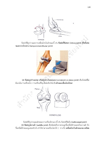 ข้อตอทีมีรูปร่างและการเคลือนไหวในลักษณะน เชน ข้อตอทีข้อศอก (elbow joint) หรือข้อตอ