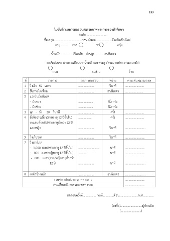 ใบบันทึกผลการทดสอบสมรรถภาพทางกายของนกศึกษา