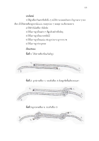 1) ใช้ผูกเชือกกับเสาหรือสิ่งอื่น ๆ จะให้ความปลอดภัยมาก ถ้าผูกกลาง ๆ ของ