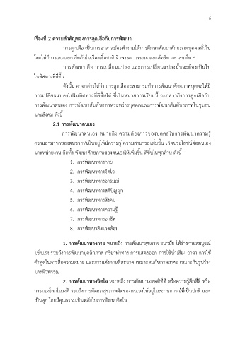 1. การพัฒนาทางกาย หมายถึง การพัฒนาสุขภาพ อนามัย ให้ร่างกายสมบูรณ์