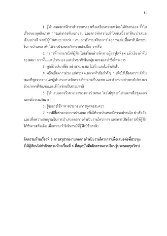 5. ผู้น าเสนอควรรักษาเวลาของการน าเสนอ โดยไม่พูดวกไปวนมาหรือพูดออก