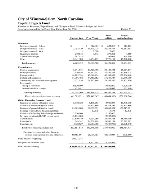 Page 142 - 2018 Comprehensive Annual Financial Report - City of Winston-Salem