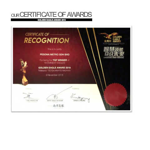 OUR CERTIFICATE OF AWARDS GOLDEN EAGLE AWARD 2018