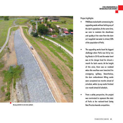 Rip-rap protection to main dam upstream. Best Practice Awards competition.