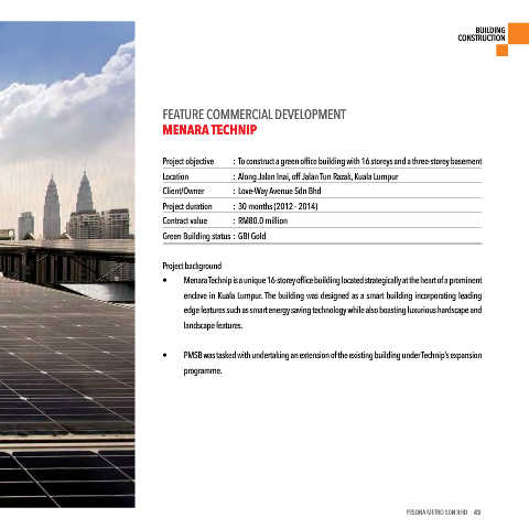 Project objective : To construct a green office building with 16 storeys and a three-storey basement