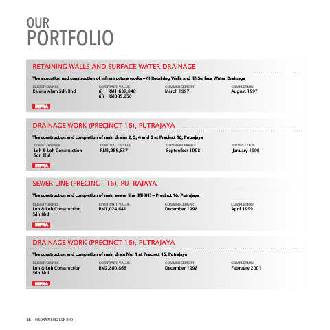 The construction and completion of main drains 2, 3, 4 and 5 at Precinct 16, Putrajaya