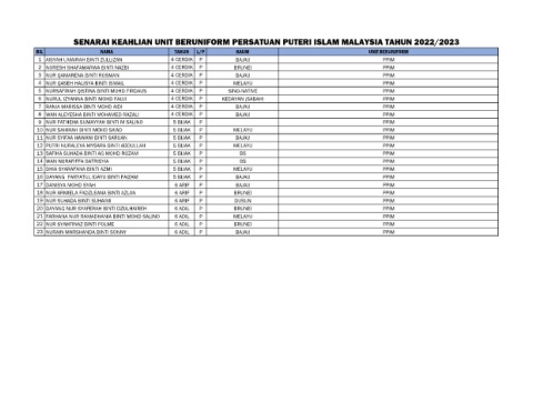 SENARAI KEAHLIAN UNIT BERUNIFORM PERSATUAN PUTERI ISLAM MALAYSIA TAHUN 2022/2023