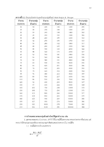 ตารางท 5.1 จํานวนประชากรและจํานวนกลุมตวอยางของ Krejcie & Morgan