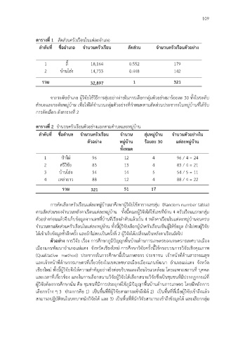 ตามสัดสวนของจํานวนหลังคาเรือนแตละหมบาน ทงนี้คณะผูวิจัยไดใชเลขทบาน 4 ครัวเรือนแรกมาสุม