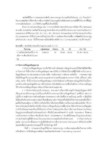 และทําการจัดกลุมขอมูลไดจากการศึกษาโดยอาจใสรหัสเชิงบรรยายเพ่อเริมตนในการวิเคราะหขอมล
