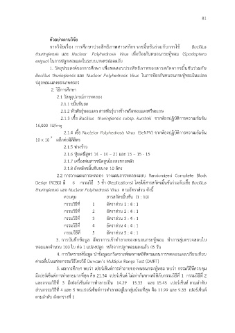 thuringiensis และ Nuclear Polyhedrosis Virus ตามอัตราสวน ดังนี้