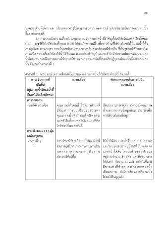 2.4 การประเมินความเสี่ยงภัยในชุมชน พบวา คณภาพน้ําทสําคญทงโคลิฟอรมแบคทเรียทงหมด