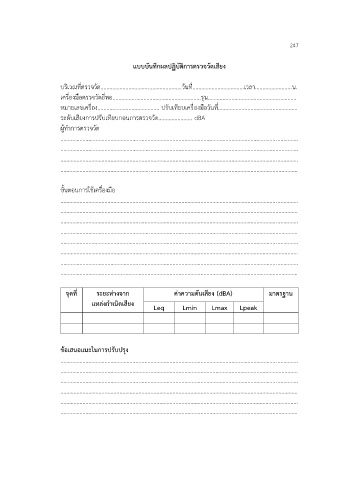 แบบบันทึกผลปฏิบัติการตรวจวัดเสียง