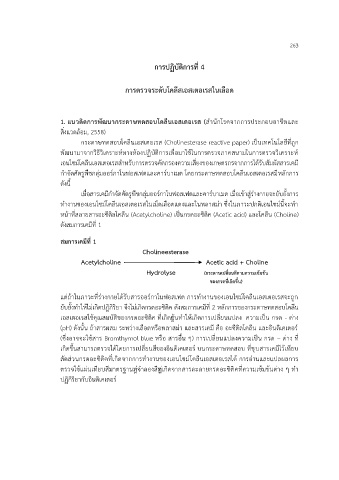 ยับยั้งท าให้ไม่เกดปฏิกิริยา จึงไม่เกิดกรดอะซิติค ดังสมการเคมีที่ 2 หลักการของกระดาษทดสอบโคลีน
