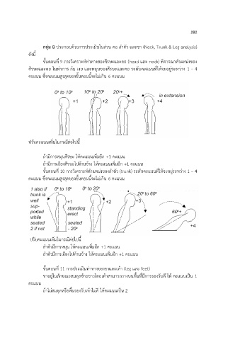 ศีรษะและคอ ในท่าการ ก้ม เงย และหมุนของศีรษะและคอ ระดับคะแนนที่ให้จะอยู่ระหว่าง 1 – 4